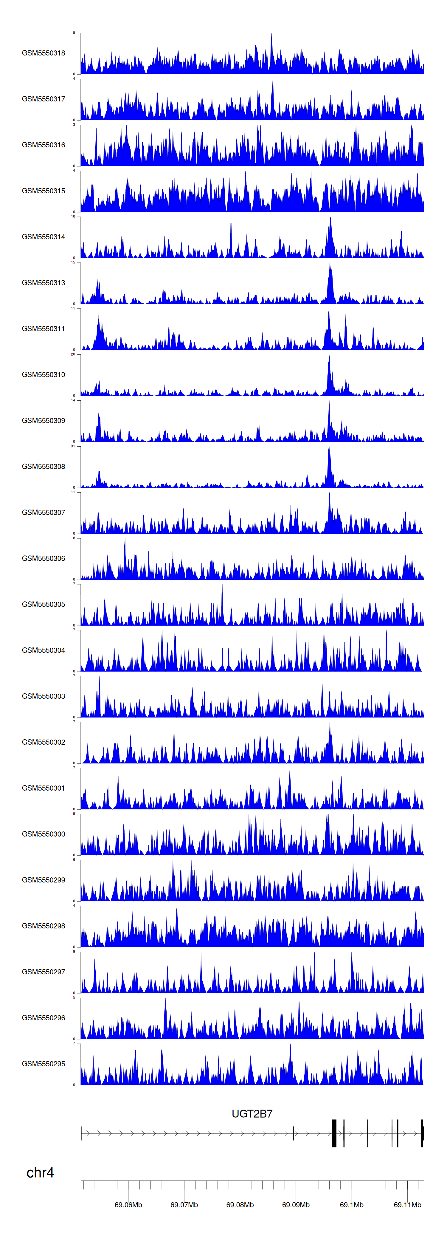 > Dataset: GSE143026 - UGT2B7 peak across samples