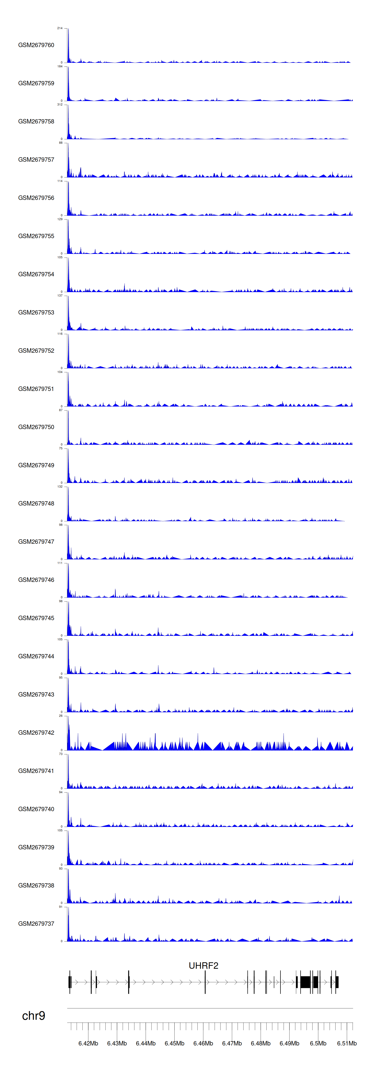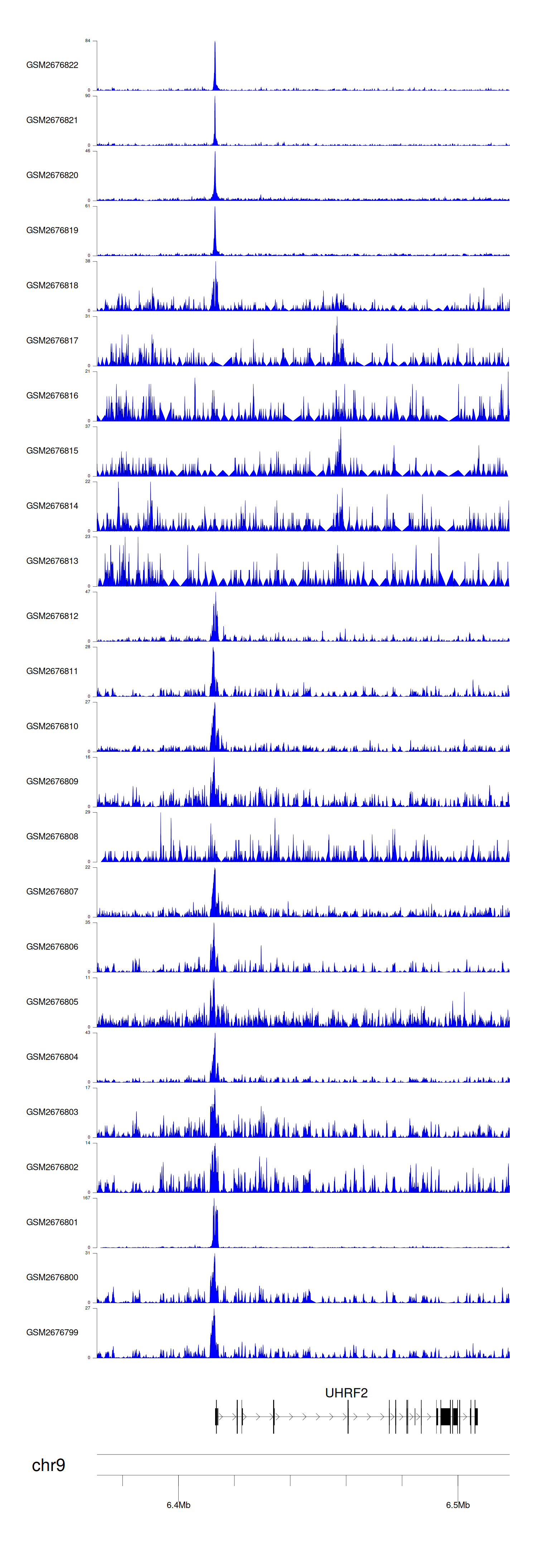 > Dataset: GSE100376 - UHRF2 peak across samples