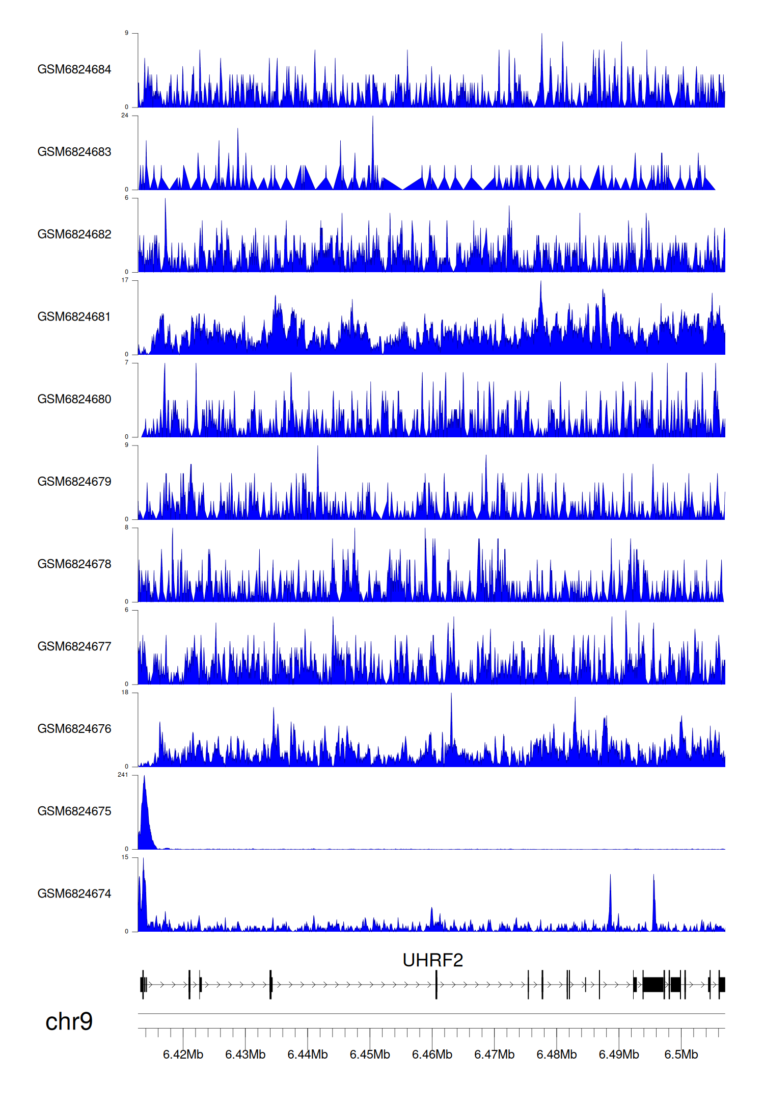 > Dataset: GSE144329 - UHRF2 peak across samples