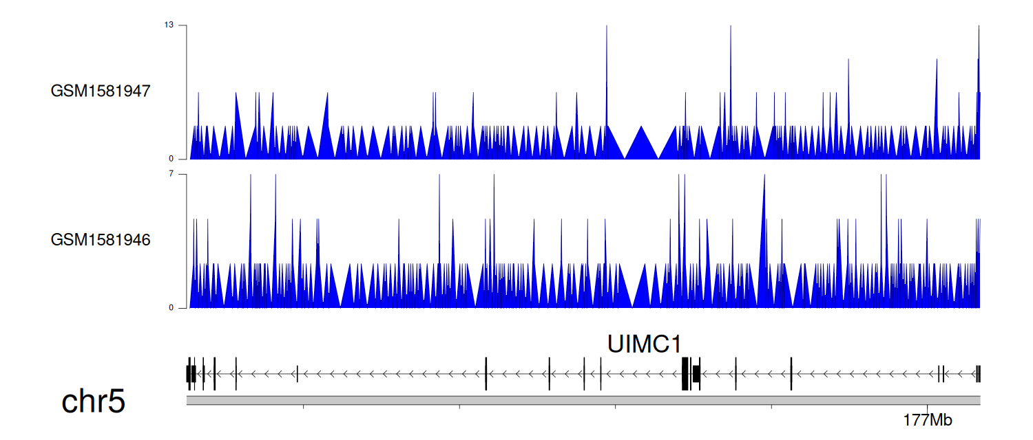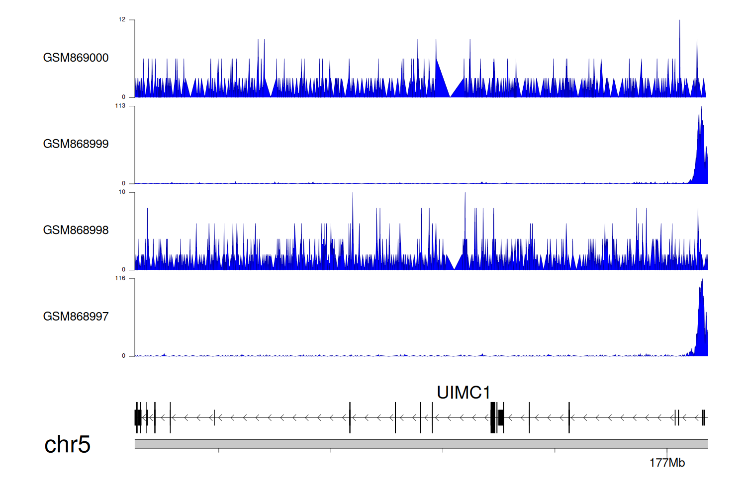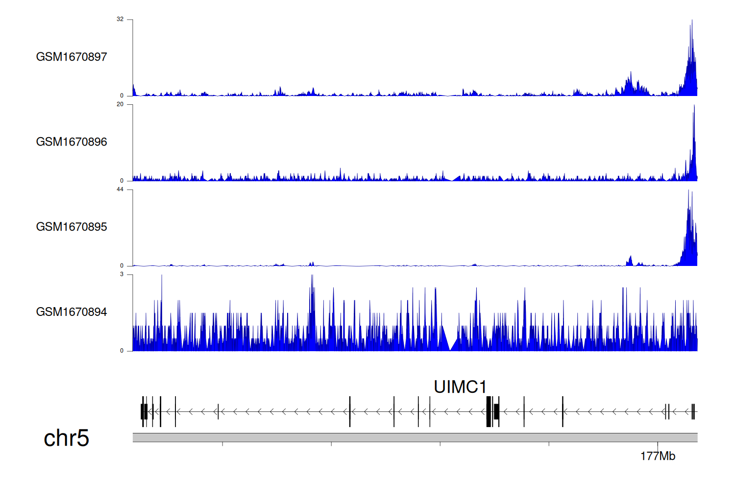 > Dataset: GSE64877 - UIMC1 peak across samples