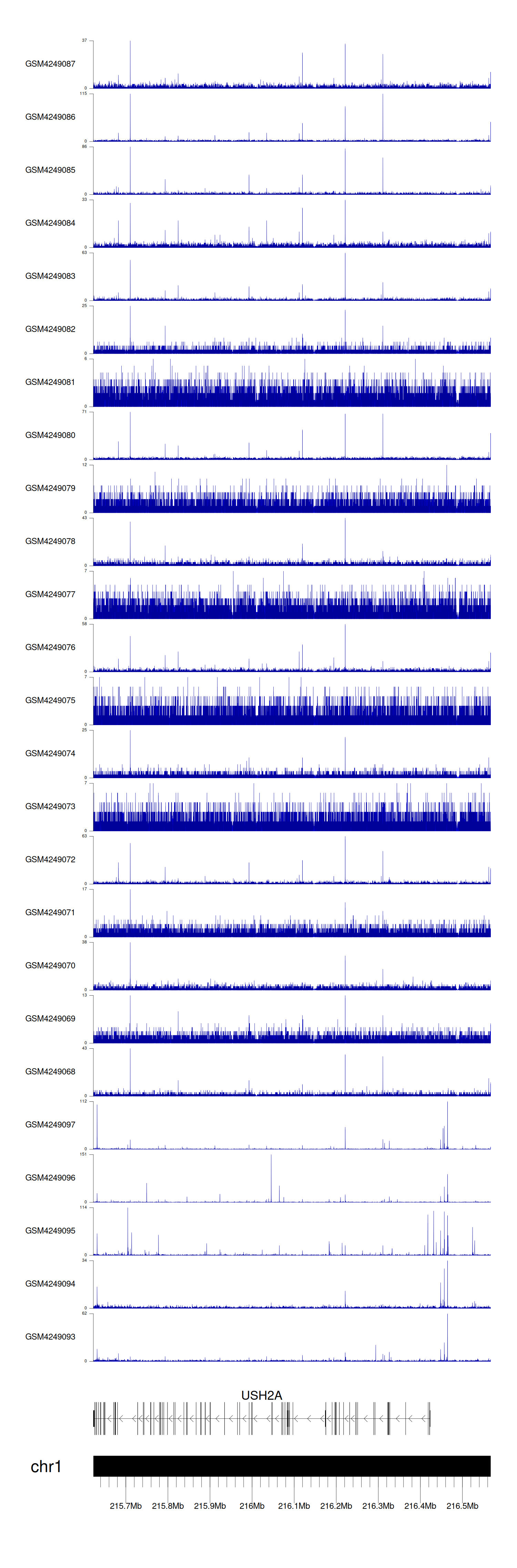 > Dataset: GSE183048 - USH2A peak across samples