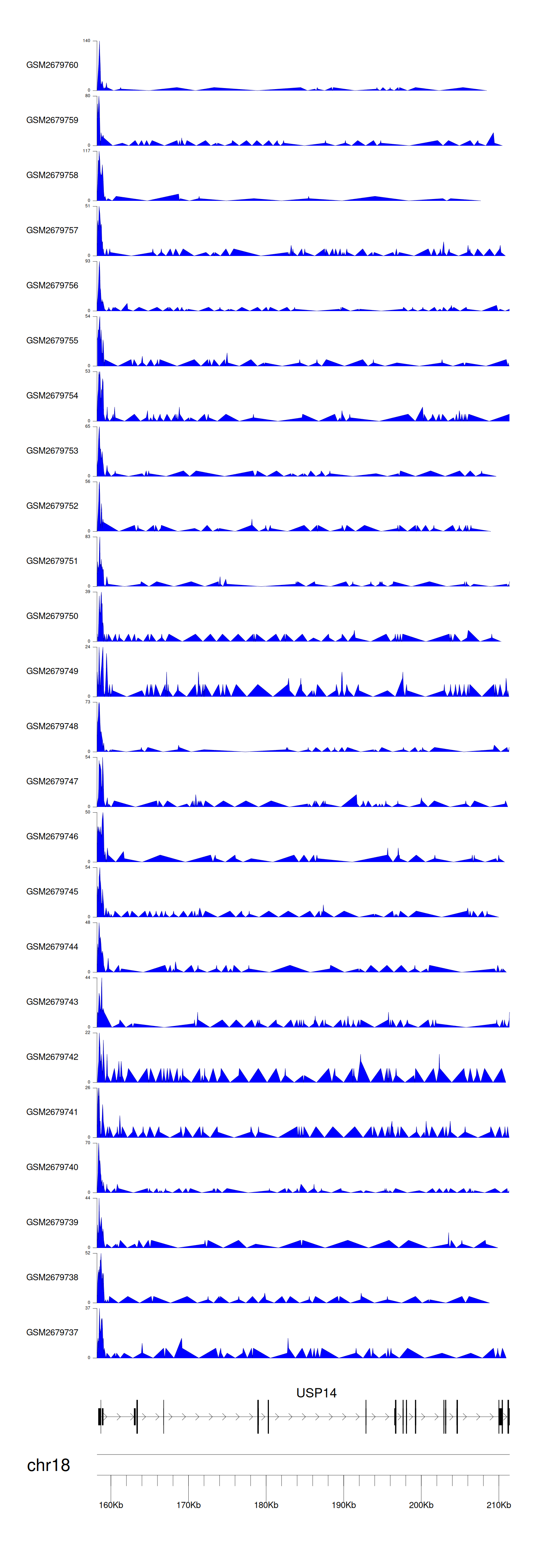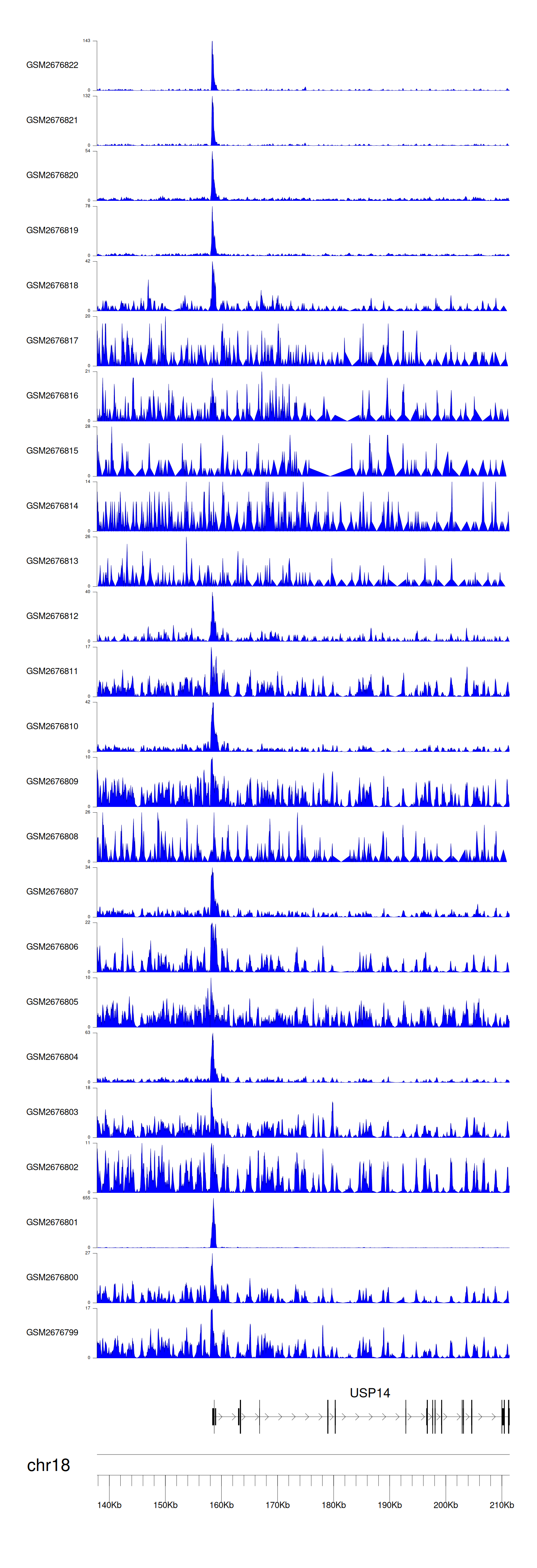 > Dataset: GSE100376 - USP14 peak across samples
