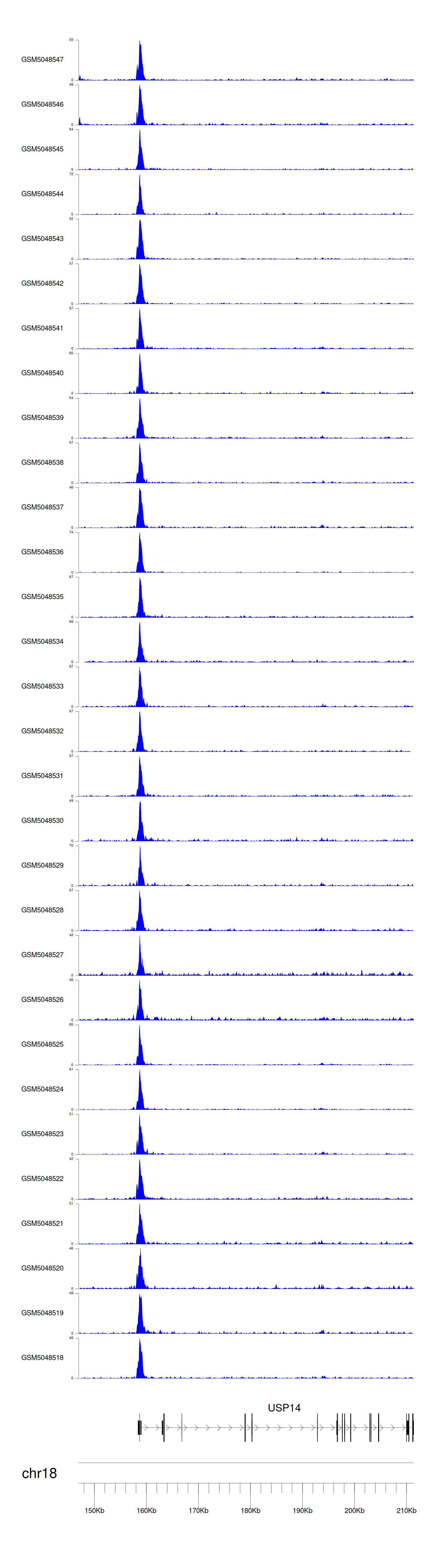 > Dataset: GSE165703 - USP14 peak across samples