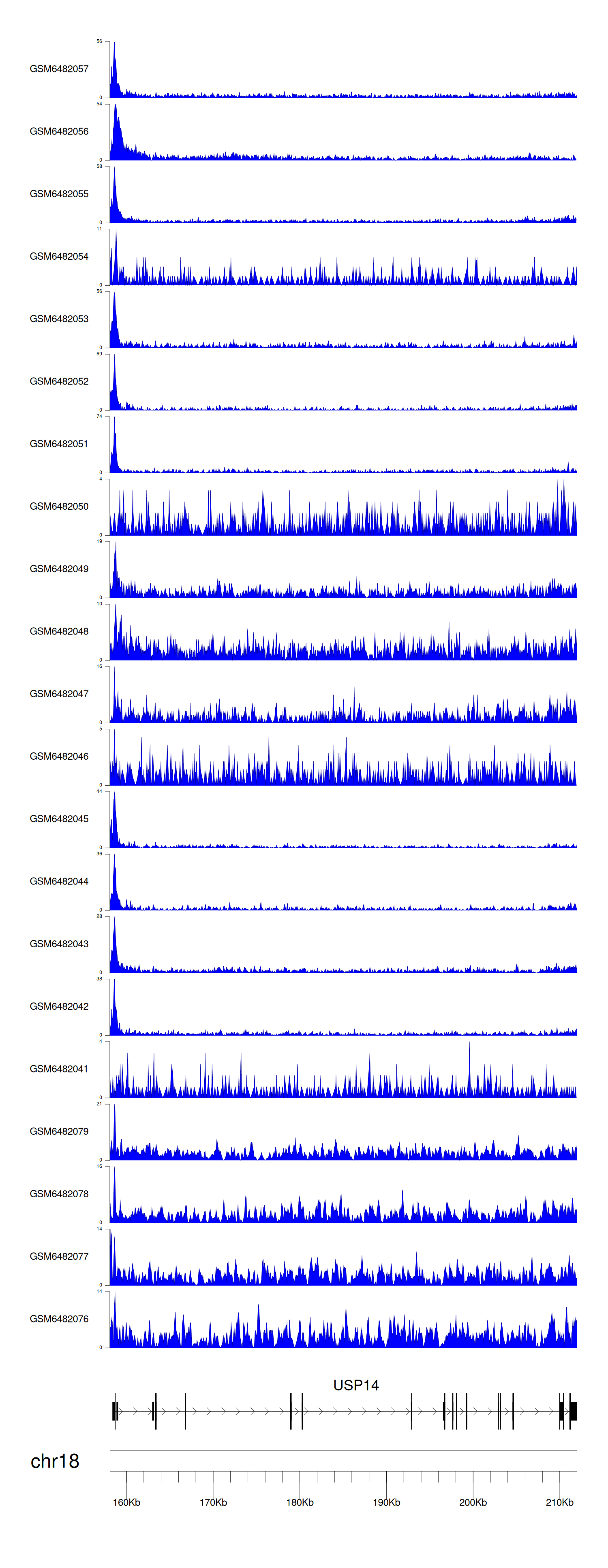 > Dataset: GSE165705 - USP14 peak across samples