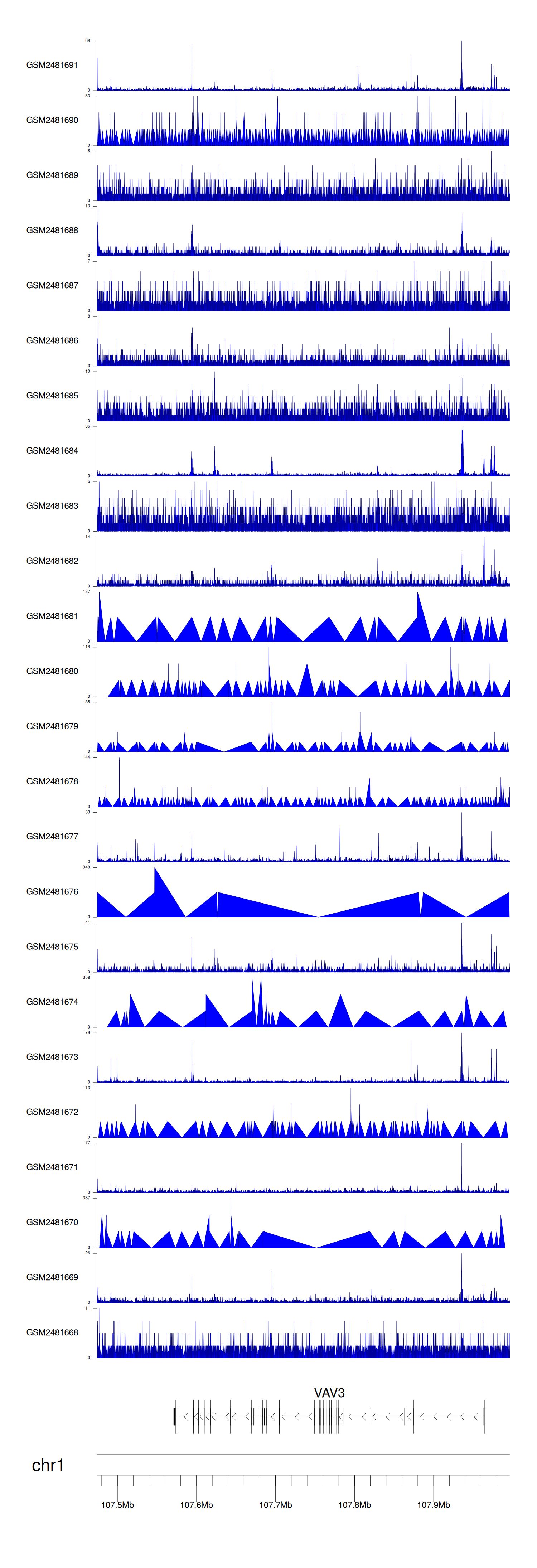 > Dataset: GSE94732 - VAV3 peak across samples