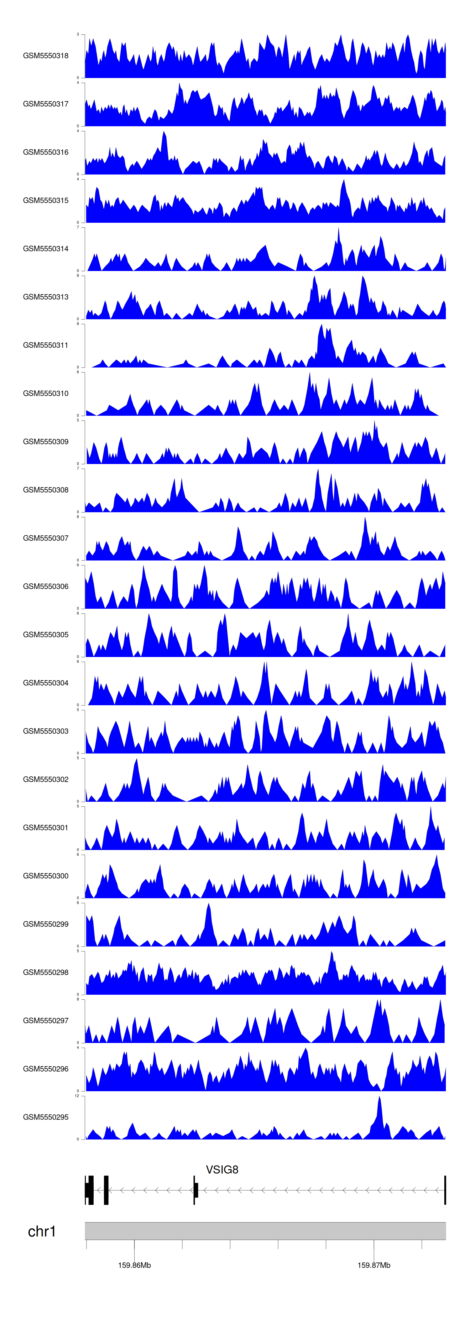 > Dataset: GSE143026 - VSIG8 peak across samples