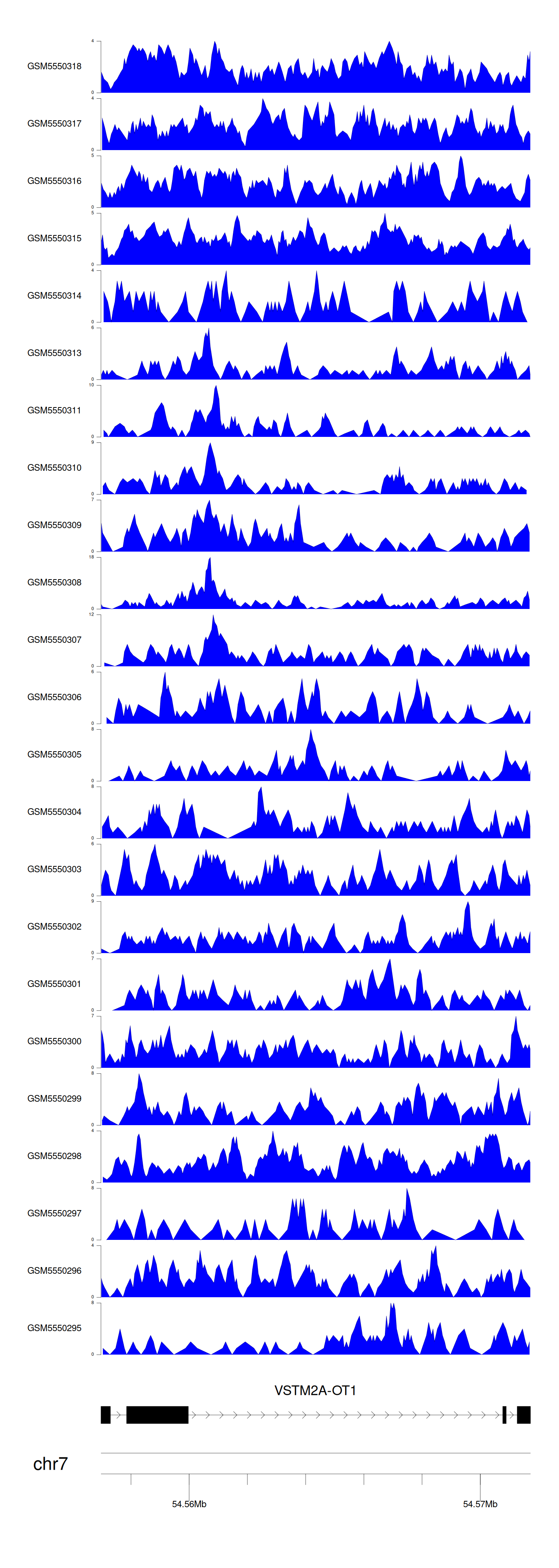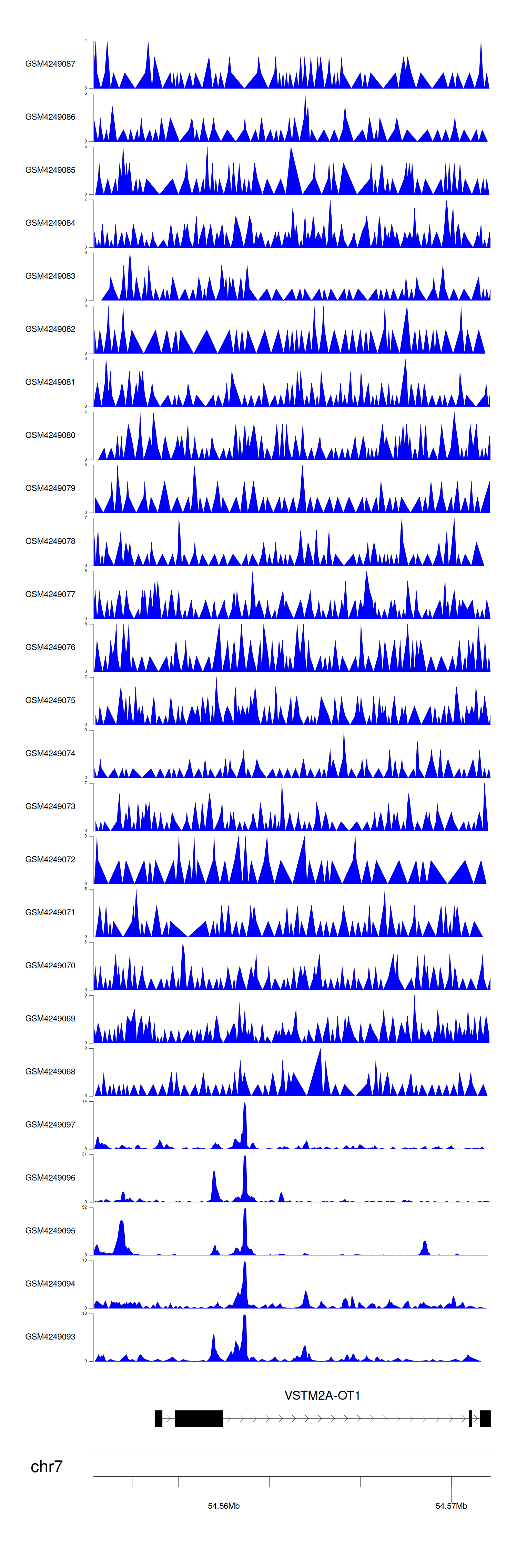 > Dataset: GSE143026 - VSTM2A-OT1 peak across samples