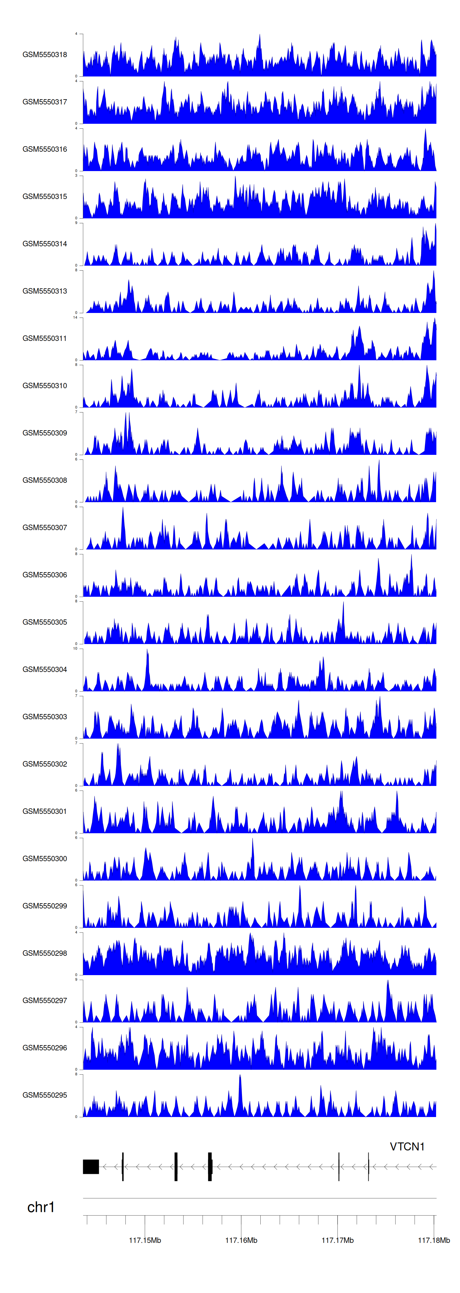 > Dataset: GSE143026 - VTCN1 peak across samples