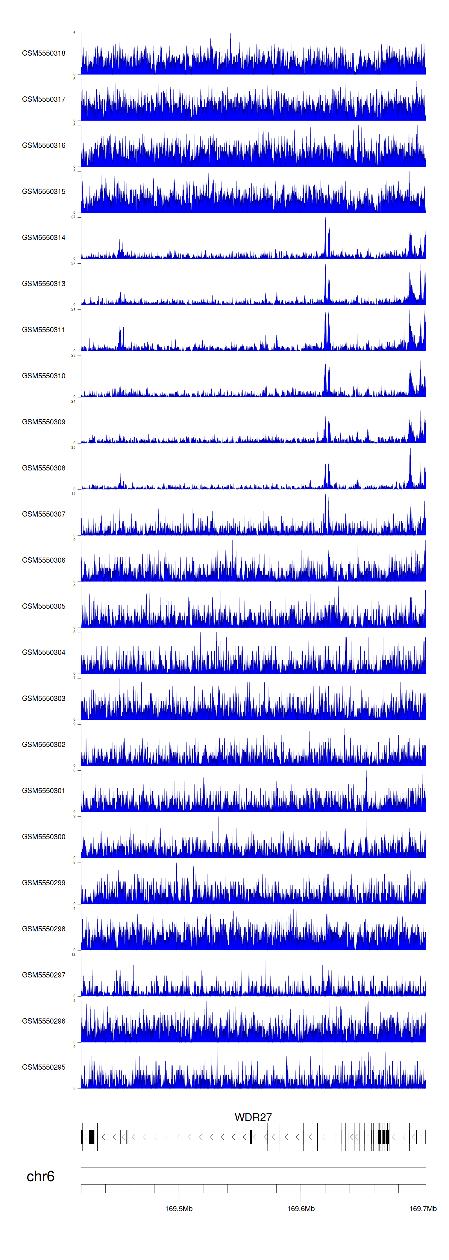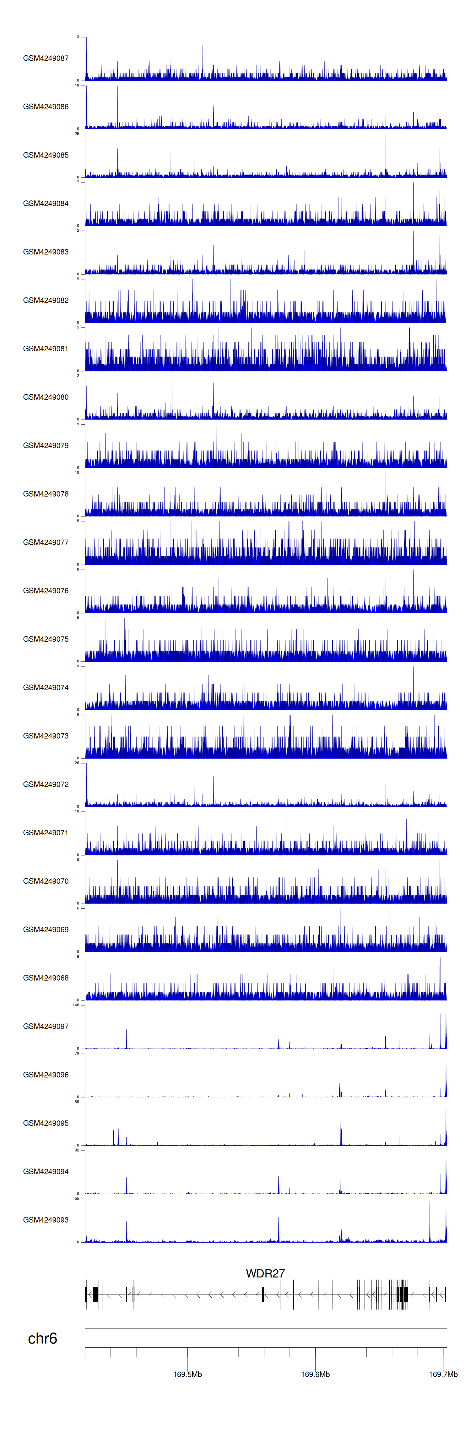 > Dataset: GSE143026 - WDR27 peak across samples