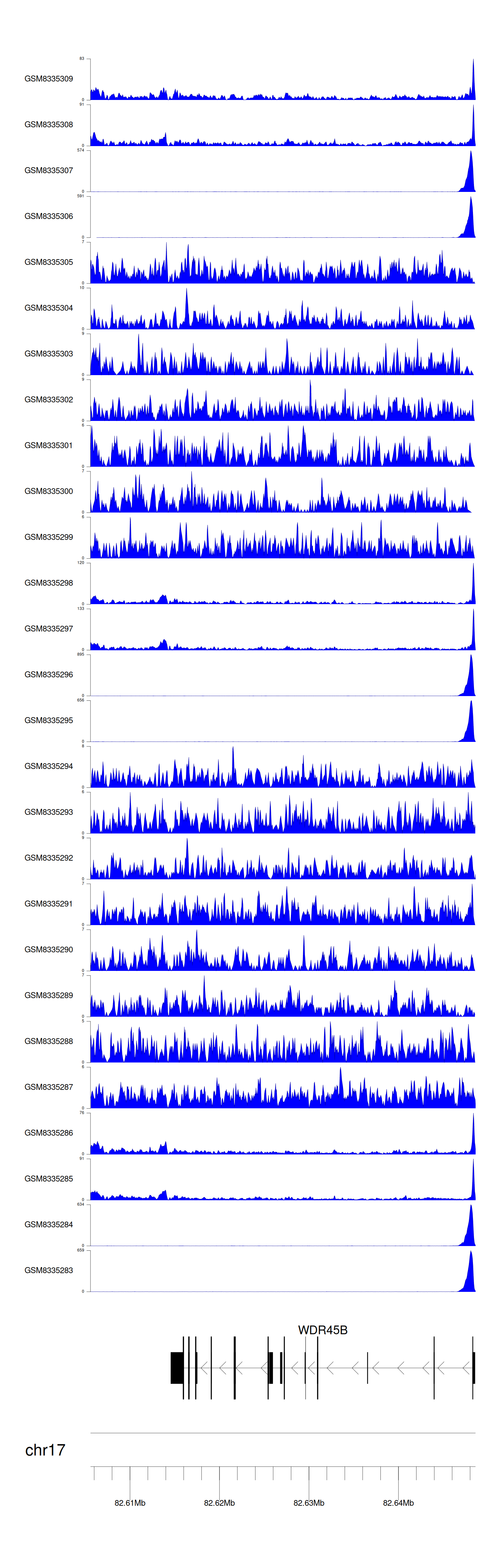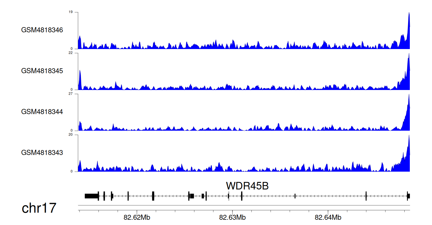 > Dataset: GSE131257 - WDR45B peak across samples