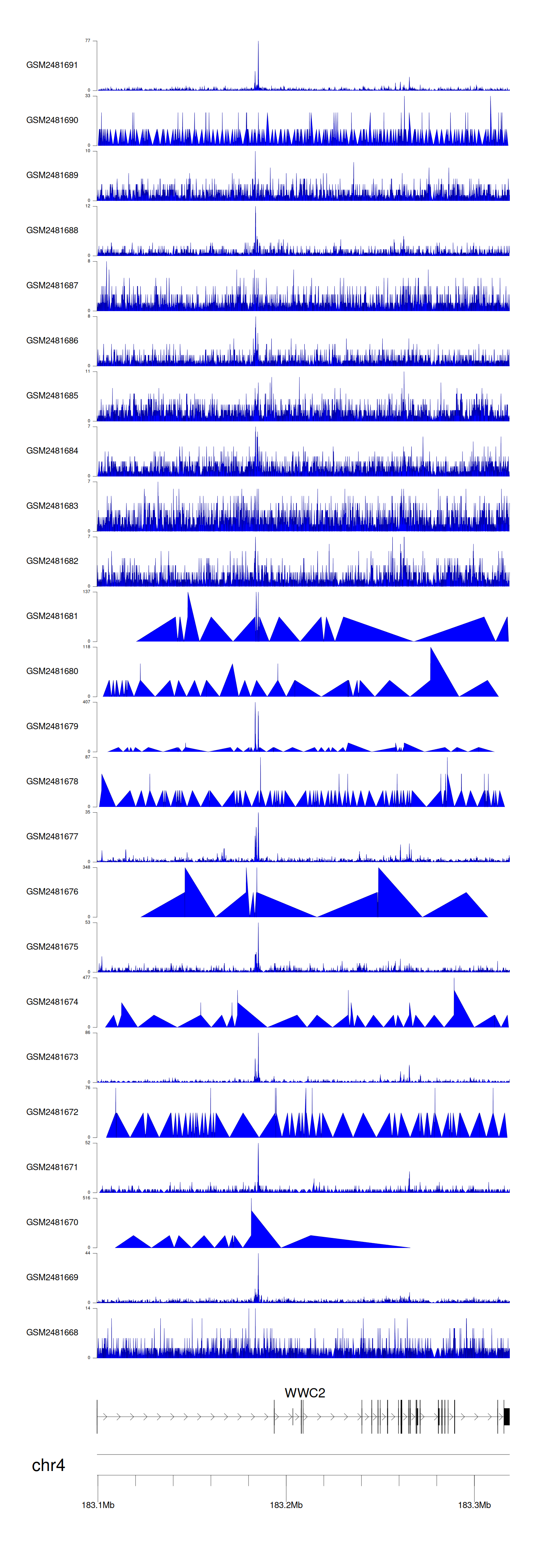 > Dataset: GSE94732 - WWC2 peak across samples