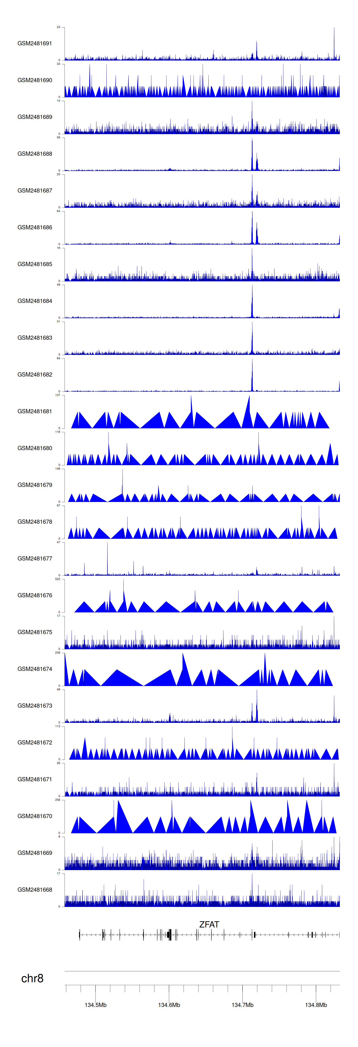 > Dataset: GSE94732 - ZFAT peak across samples