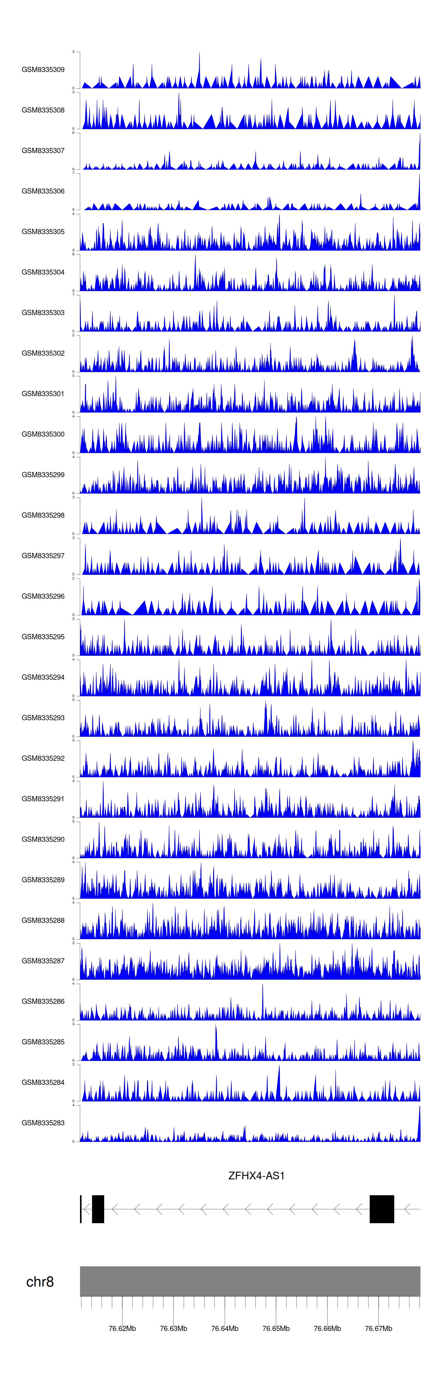 > Dataset: GSE270130 - ZFHX4-AS1 peak across samples