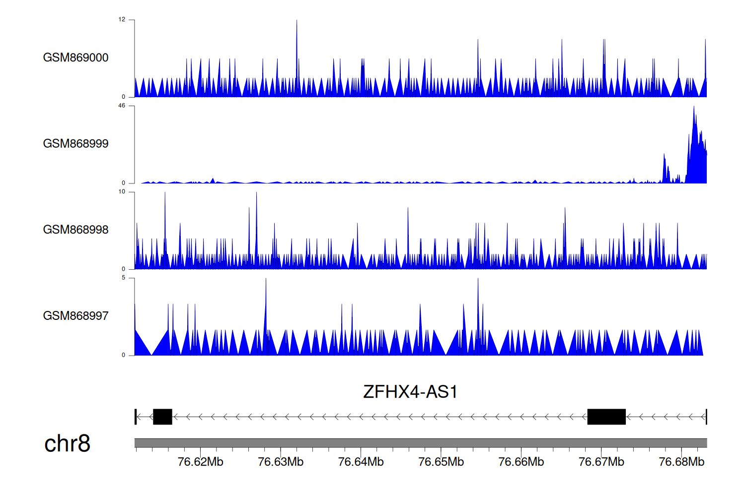 > Dataset: GSE68402 - ZFHX4-AS1 peak across samples