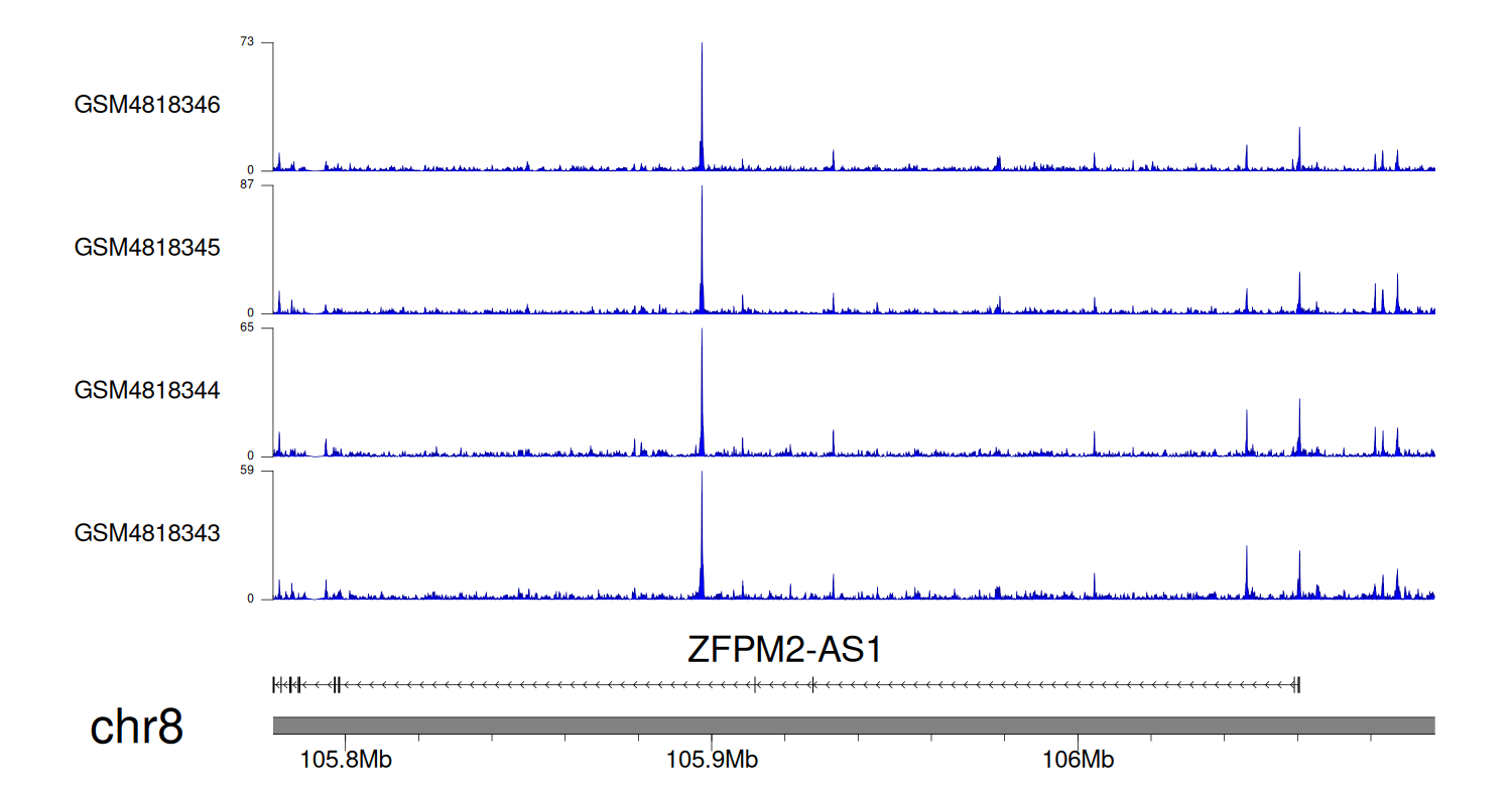 > Dataset: GSE270130 - ZFPM2-AS1 peak across samples