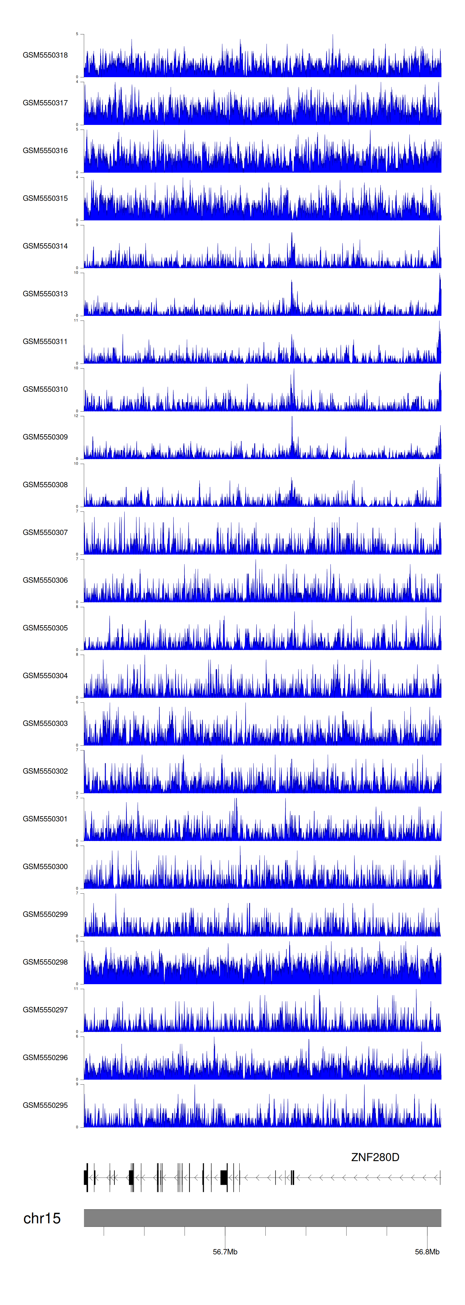 > Dataset: GSE143026 - ZNF280D peak across samples