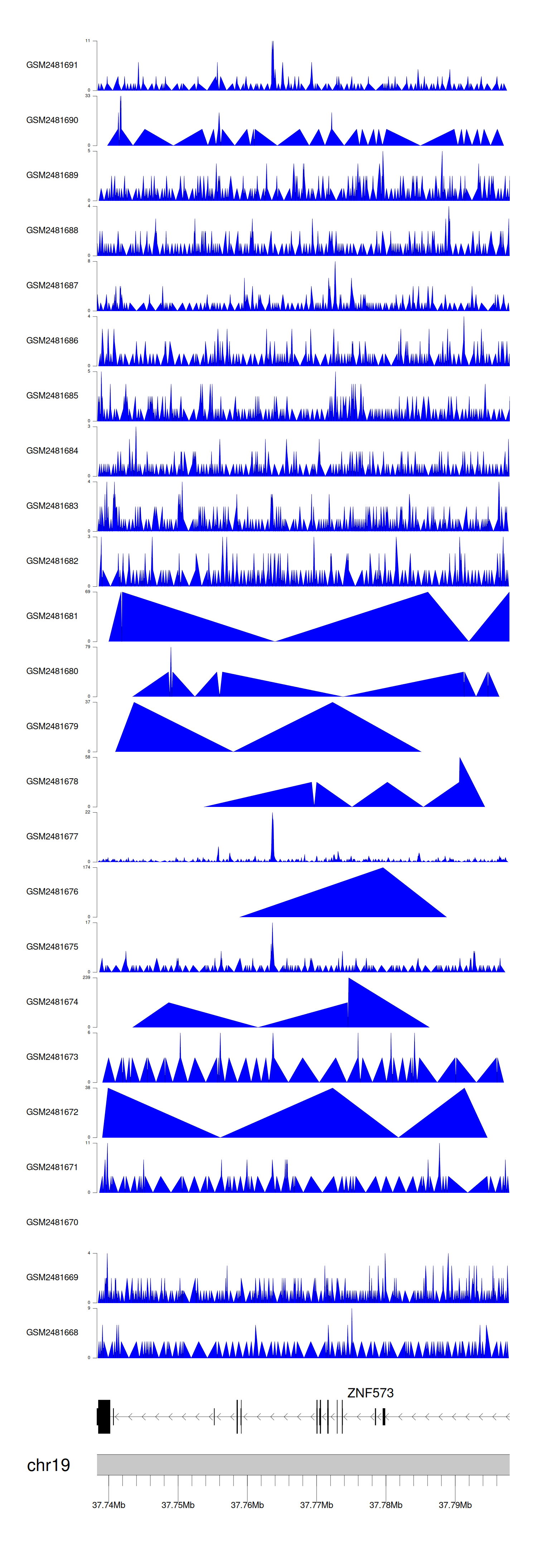> Dataset: GSE94732 - ZNF573 peak across samples